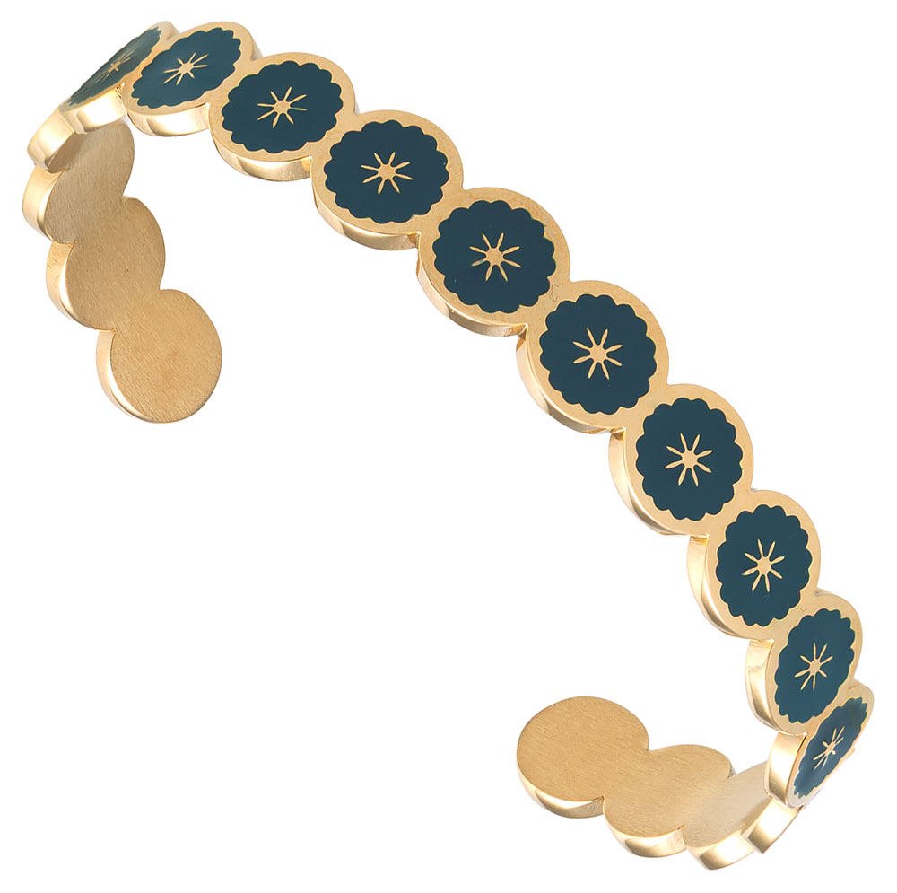 Bracelet manchette ouverte de la collection Louise Garden en métal doré.