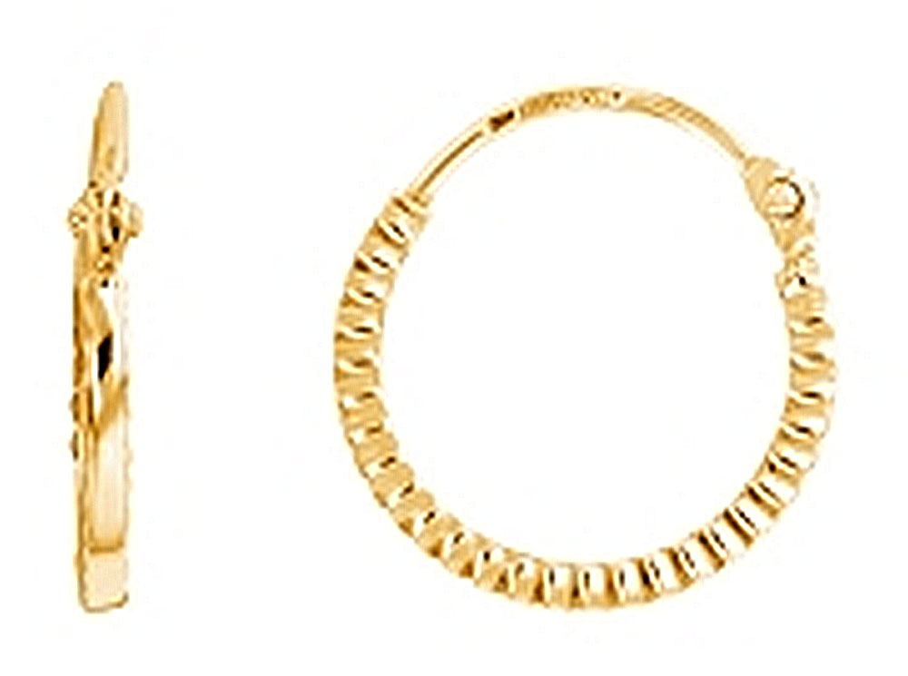 Boucles d'oreille créoles ciselées en or jaune 375 millièmes.
