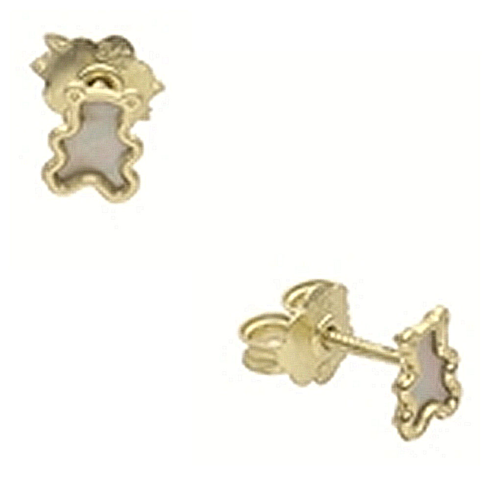 Boucles d'oreille en or jaune 375 millièmes et nacre représentant un ourson.