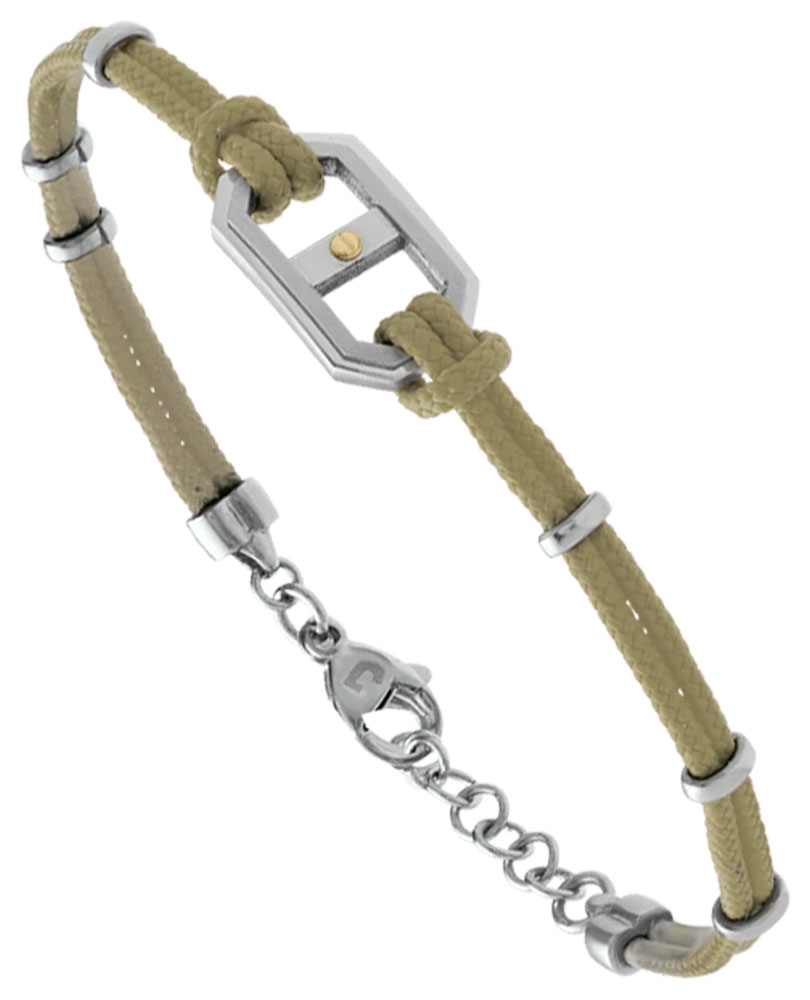 Bracelet pour homme de la collection Jourdan en cordelette kaki, acier inoxydable et or jaune 750 millièmes.