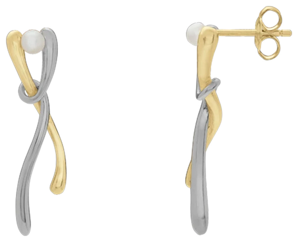 Boucles d'oreille de la collection Jourdan en argent bicolore et perle d'eau douce.