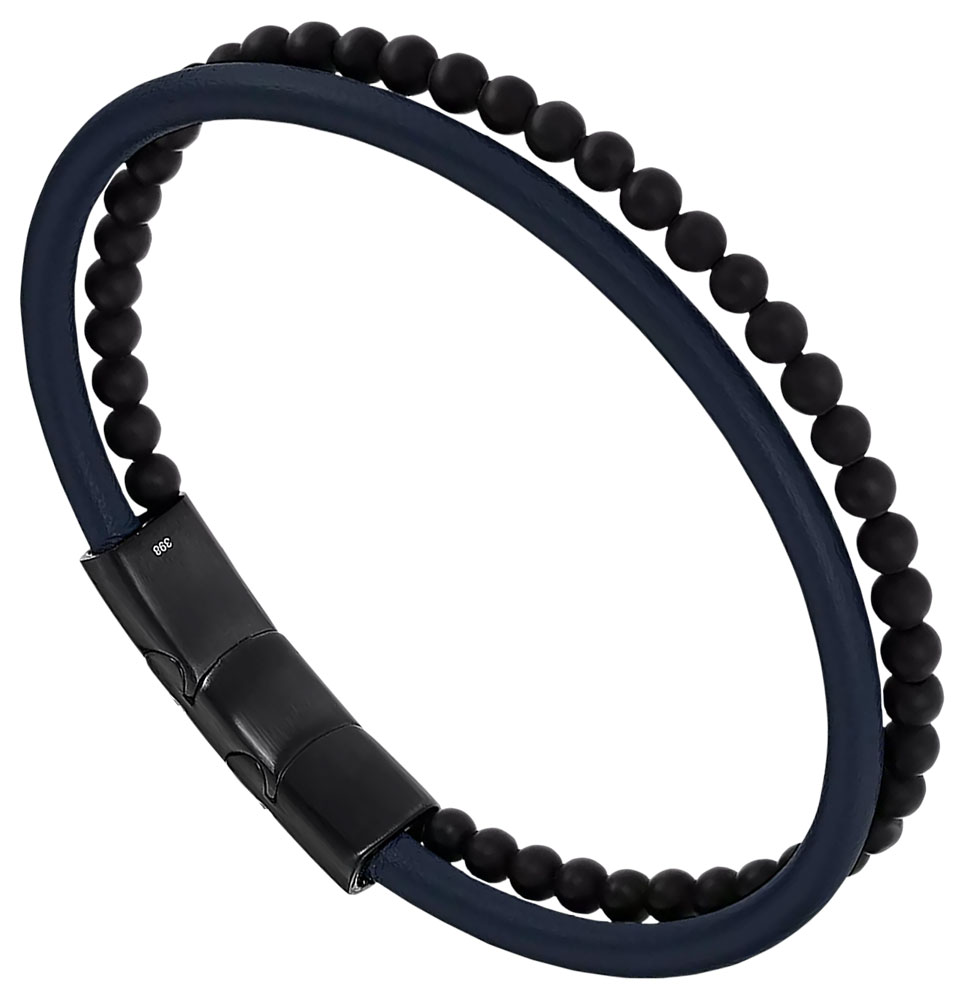 Bracelet pour homme de la collection Lotus en cuir et acier.