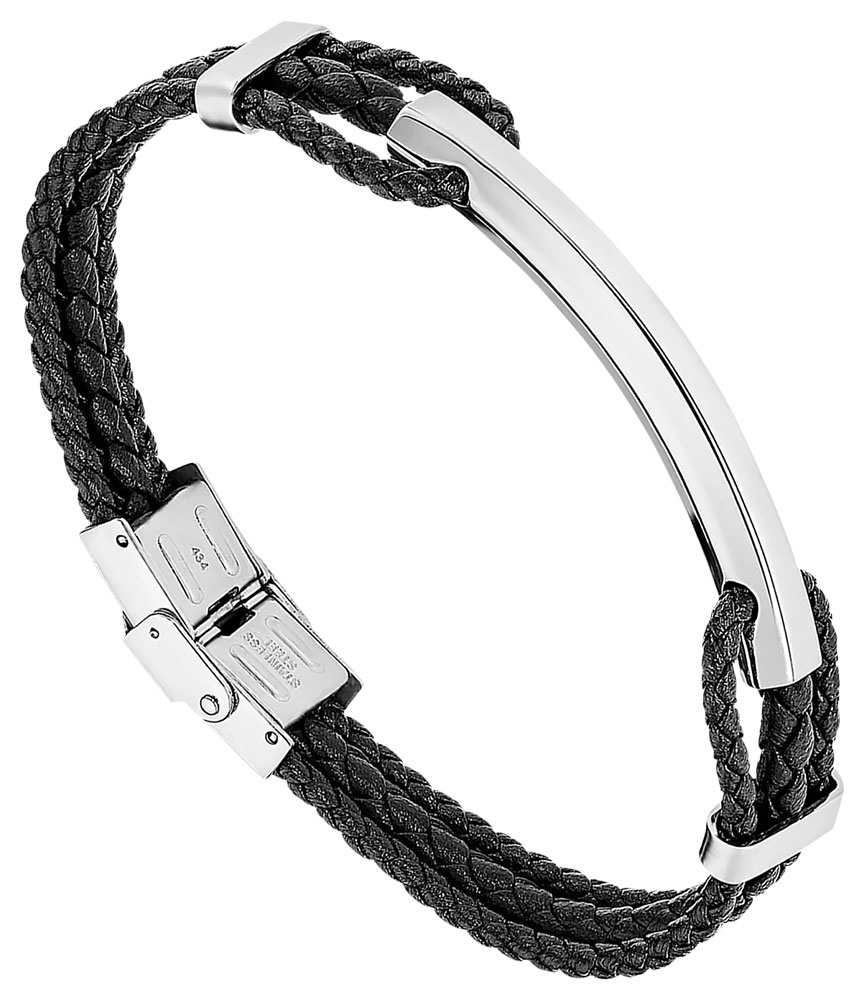 Bracelet pour homme de la collection Lotus en cuir noir et acier inoxydable.