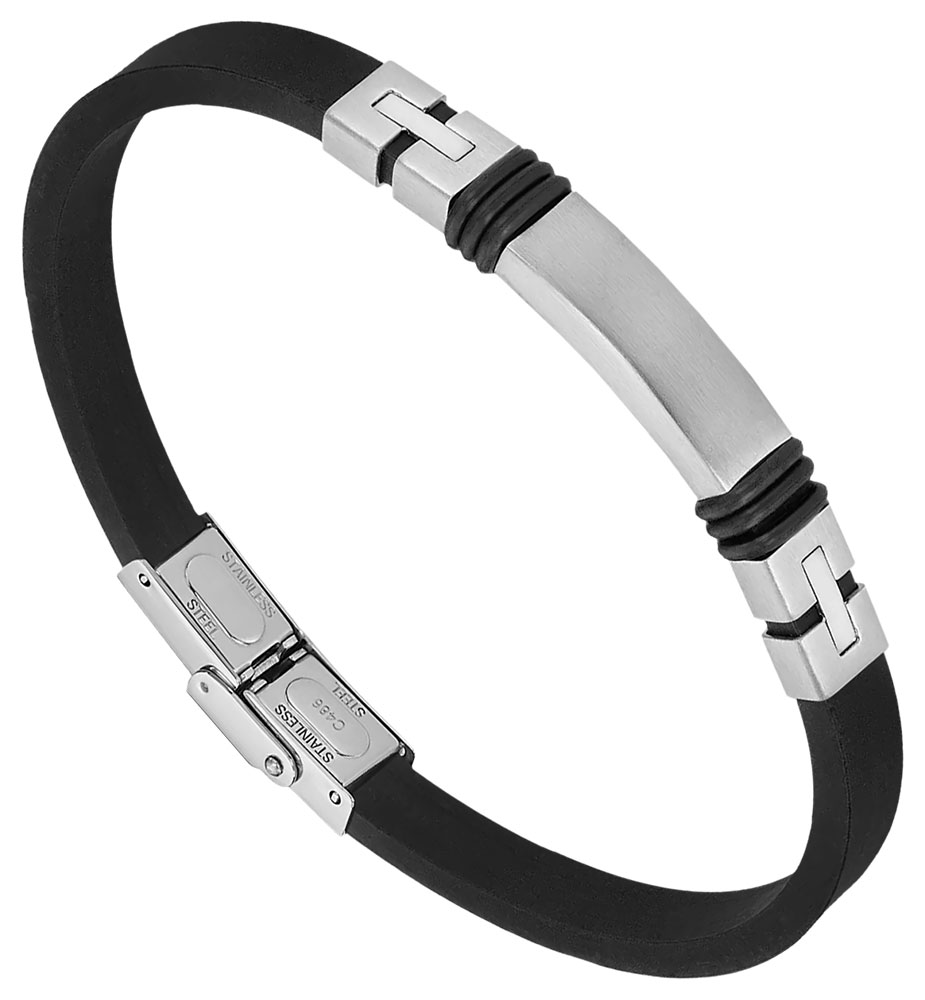 Bracelet pour homme de la collection Lotus en résine noire et acier inoxydable.