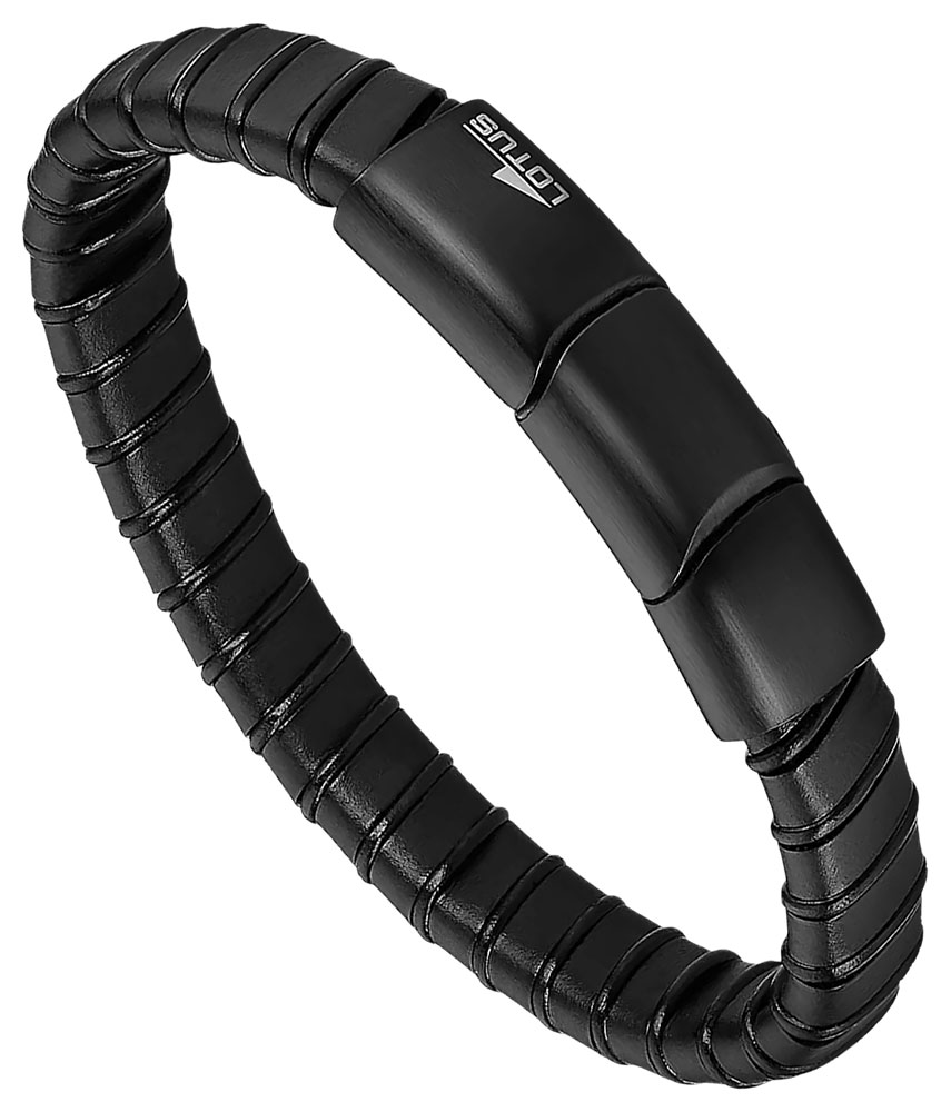 Bracelet pour homme de la collection Lotus en acier et cuir noir.