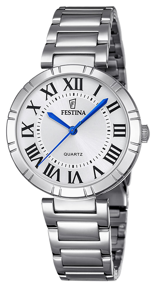 Montre pour femme de la collection Festina en acier inoxydable avec un fond de cadran gris.