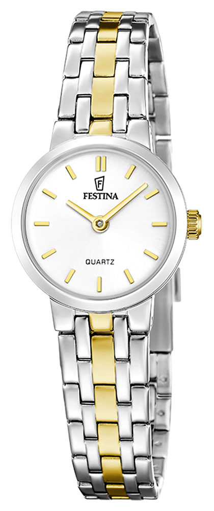 Montre pour femme de la collection Festina en acier bicolore avec un fond de cadran gris.
