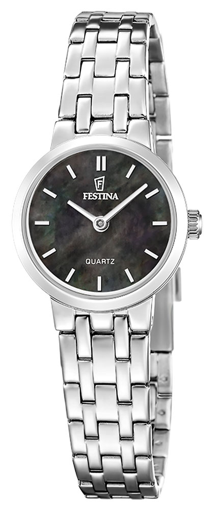 Montre pour femme de la collection Festina en acier inoxydable avec un fond de cadran en nacre noire.