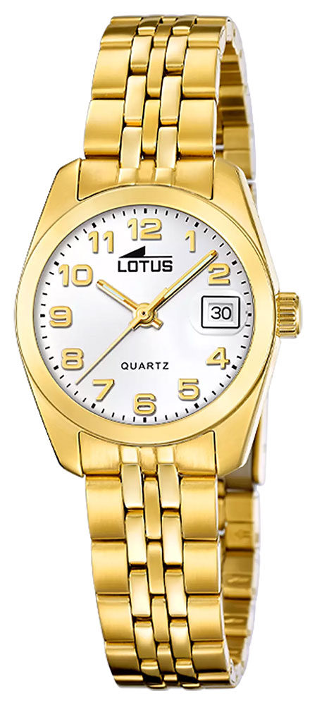 Montre pour femme de la collection Lotus en métal doré avec un fond de cadran gris.