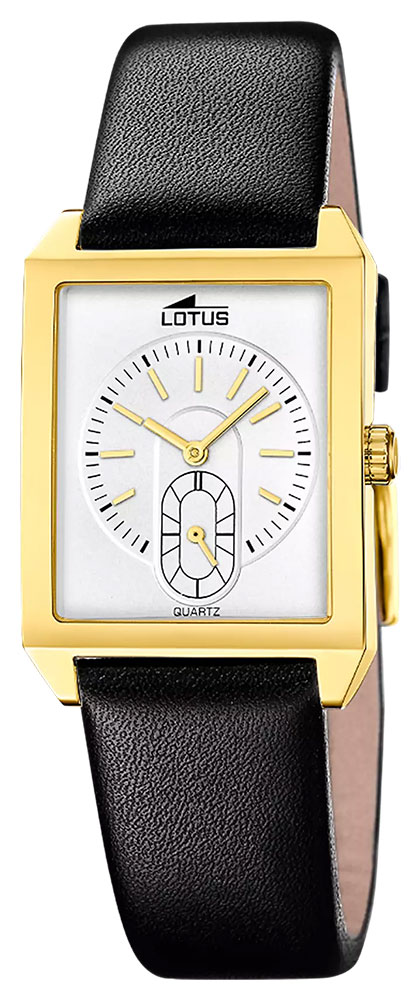 Montre pour homme de la collection Lotus en métal doré sur un bracelet en cuir noir.