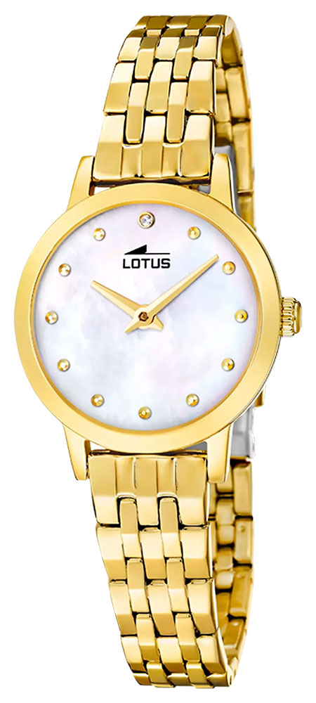 Montre pour femme de la collection Lotus en métal doré avec un fond de cadran nacré.