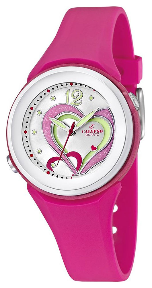 Montre pour femme de la collection Calypso en résine rose et grise.